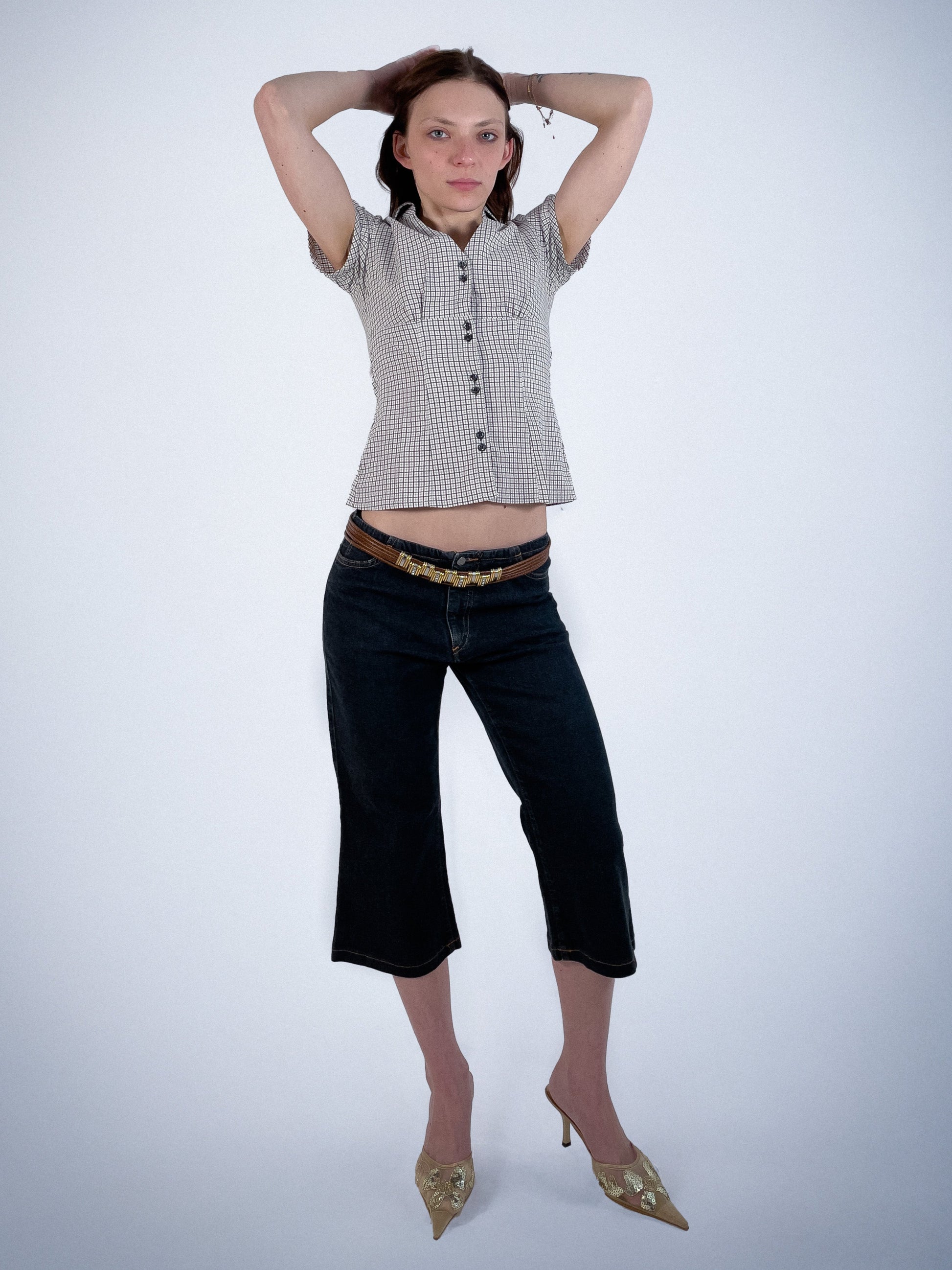 Pantalone Guess in denim, lunghezza pinocchietto, uno stile inconfindibile: quello Y2K.