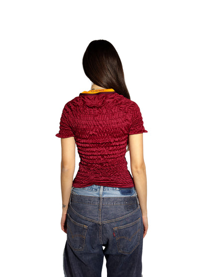 Crafted from original vintage football jerseys, reimagined through the wrinkle stitching technique. Raw textures and folds define its silhouette, turning imperfection into identity. A signature Again Studios piece: bold and built to last.